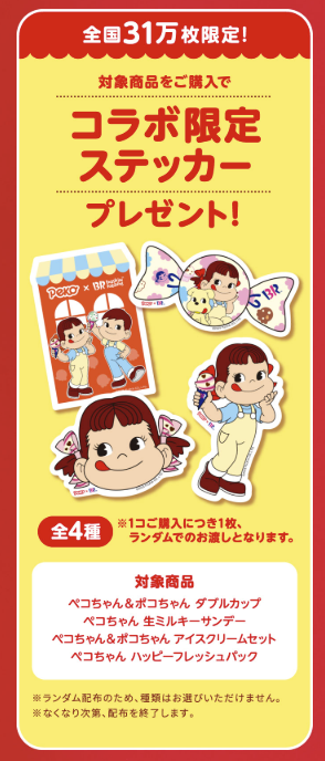 | ペコちゃん×サーティワン ミルキーコラボ | 新作フレーバー「ポッピングミルキー」「ミルキーミルキー」 |