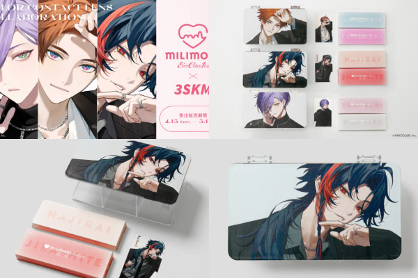 🌟あなたの瞳に、推しがやってくる!?🌟にじさんじのユニット「3SKM(スリーエスケーエム)」と人気カラコン「EverColor1day MILIMORE」が夢のコラボ🎉北見遊征、魁星、榊ネス3人の描き下ろしイラスト入りコンタクトケースや、キラキラのクリアカードもついてくる限定セットが完全受注で登場💖この春、“新しい自分色”に出会ってみて♪