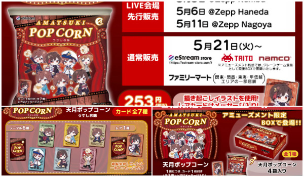 「天月ポップコーン」がファミマ(ファミリーマート)・eStream Storeで取扱い販売決定しました!カードは7種類がラインナップ♥クレーンゲーム景品には限定BOXも登場予定なので楽しみ♪