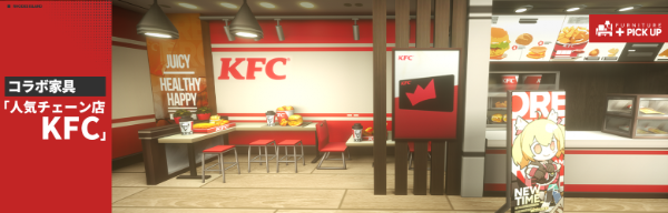 | キャンペーン概要 | KFC公式アプリ・公式ページ内の「KFCネットオーダー」にて、コラボ特別メニューを注文するとコラボ限定コーデやコラボ家具のアイテムコードをプレゼント! |