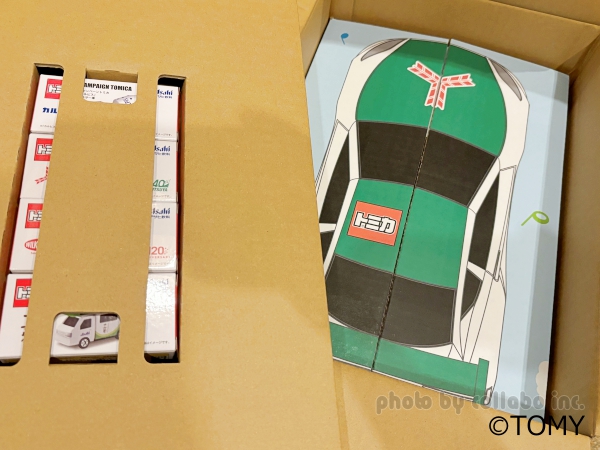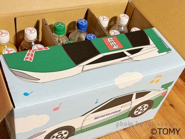 Amazon限定アサヒ飲料トミカコンプリートセットを購入すると、コラボカーが5面にプリントされたオリジナルダンボールで届くのも嬉しいポイントです。カルピス・三ツ矢・ウィルキンソンの3種類のコンプリートセットが展開されています。