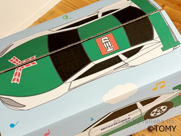 まず絶対欲しかった三ツ矢ブランドデザインのスポーツカー!グリーンと白のボディが爽やかでかっこいいです。ボンネットにが大きめの三ツ矢マークが光る!