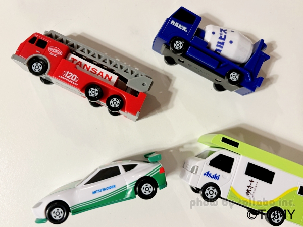 トミカと三ツ矢サイダー、意外な組み合わせだけどすごく魅力的!イベントカーのデザインが特に気になるし、三ツ矢ブランドの象徴としてばっちり!各ドリンクの個性が活かされたデザインで、ファン心をくすぐられます。全国のスーパーで手に入るのも嬉しい。
