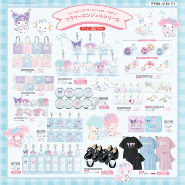 しまむらグループのアベイル(Avail)にて、サンリオのコラボグッズが店頭・オンラインストアで2024年3月2日発売!レトロ・お誕生日・アベイル限定アートのフラワーエンジェルをテーマにしたグッズが大量登場!Tシャツやアクリルキーホルダー、トイレマットなどバラエティ豊かなラインナップ♪サンリオキャラクターたちが大集合♡