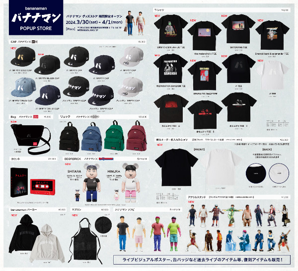 「バナナマン・ポップアップストア」の初開催が決定しました!WITH HARAJUKU / LIFORK Harajukuにて、2024年3月30日~2024年4月1日の3日間限定開催!BE@RBRICKコラボやEastpakコラボなどの特別アイテムやライブビジュアルポスターなどの過去ライブのアイテム等の復刻アイテムなどが集結!3月30日(土)と3月31日(日)の10:00~17:00は物販整理券が必要なので注意。整理券は2024年3月16日より抽選応募開始。