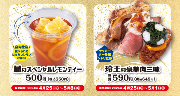 | 凪のスペシャルレモンティー | 2024年4月25日(木)〜5月8日(木) | 550円 |