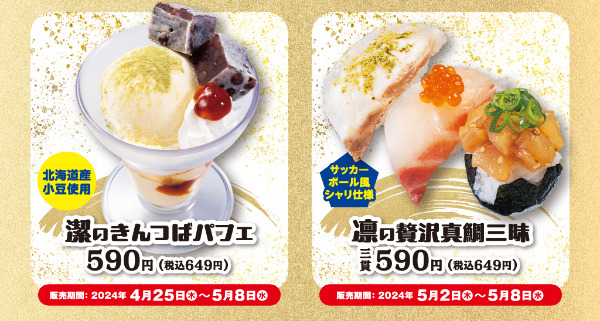 | 潔のきんつばパフェ | 2024年4月25日(木)〜5月8日(木) | 649円 |