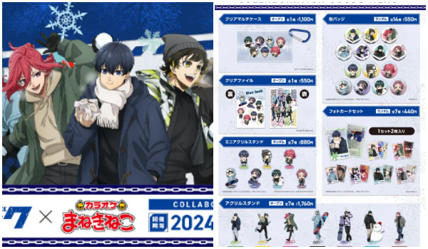 ブルーロックと、まねきねこの2024年コラボが開催決定!グッズ&コラボルーム等企画いっぱい。開催店舗リストも公開されました。グッズはクリアマルチケースやフォトカードセットなど盛りだくさん♪まねきねこでブルーロック主題歌などを歌ってグッズもゲットしよう♡