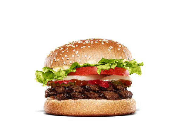 | 商品概要 | 直火焼きの100%ビーフパティに、フレッシュなレタス、トマト、オニオンの豊富な野菜を重ね、コク深く渋みのあるスモーキーなおいしさが特長の“ブルズアイ™ BBQソース”と食欲をそそるスパイシーソースで仕上げた、コクのある旨辛なおいしさが楽しめるバーガーです。 |