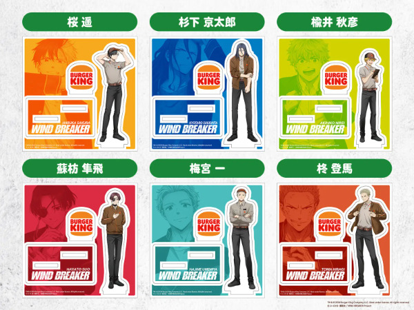 バーガーキング×ウィンドブレーカー(WIND BREAKER)コラボ!アクリルスタンド付きセット!全6種類・1店舗1デザイン配布