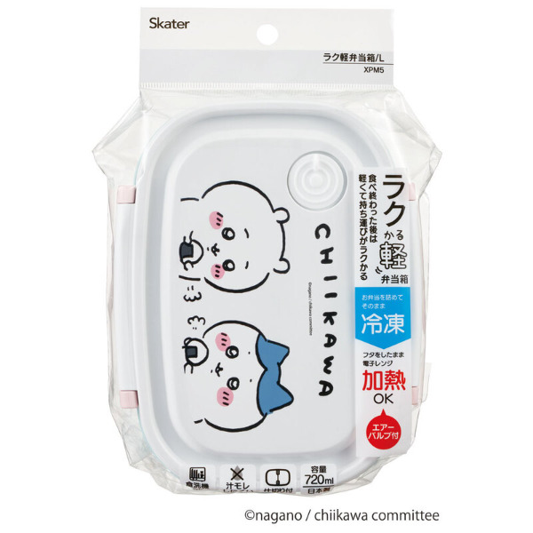 スケーターより、「ちいかわ」の軽くて使いやすいシンプルな1段ランチボックスが発売されます。容量は720mlで、お弁当を詰めてそのまま冷凍もでき、フタをしたまま電子レンジ加熱もOKです。食洗機にも対応!汁漏れしにくいパッキン付きフタで、詰めやすい仕切り板付き。スケーター公式通販のほか、キャンドゥやしまむら、アベイル等で取り扱い。お弁当箱の蓋にはおにぎりが降るあの回のイラストがプリントされているかわいいお弁当箱です♡