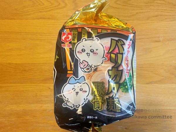 開封すると1パックに5食入っており、デザインは5種類となっています。実写ラーメン写真とちいかわたちが良い感じにコラボしたパッケージはとてもかわいいですね。チャルメラの文字とかちいかわの世界観と合ってますよね。
