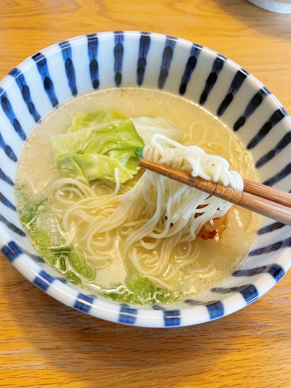 バリカタ麺は程よい硬さでのど越しが良く、豚骨との組み合わせが最高です。ペロリと食べられる味でした。