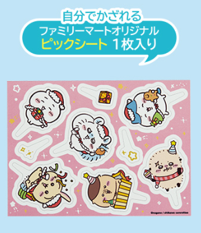 プレゼントにニコっとするちいかわ&ハチワレ、クラッカーで盛り上げるうさぎ、チキンを食べるモモンガ、プレゼントボックスに入るくりまんじゅう、ケーキをほおばるラッコ…とキャラクターそれぞれの動きのあるイラストピック、あなたはどう飾る??
