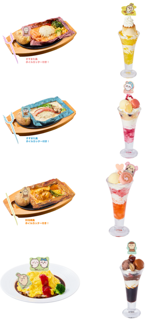 ちいかわコラボのオムライスやチョコパフェ、写真映え間違いなし!1日1食までの制限があるから、スケジュール調整しないと!