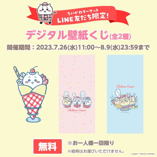クレープくじ発売に向けて、ちいかわくじで「デジタル壁紙が当たる無料くじ」も期間限定開催。