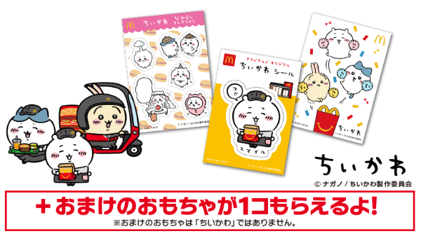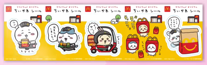 マックちいかわハッピーセット♪シール全5種類、デリバリーバイクのうさぎに注目💨販売はいつまで?
