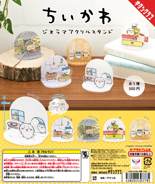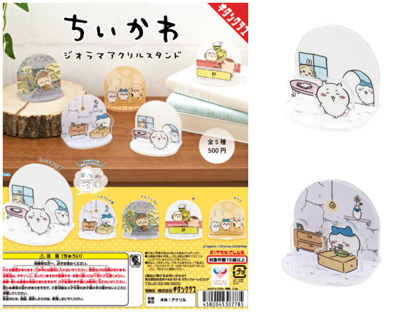 ちいかわの世界がジオラマ風のアクリルスタンドになってカプセルトイに登場!ちいかわの家、ハチワレの家を含む全5種類が展開されます。
