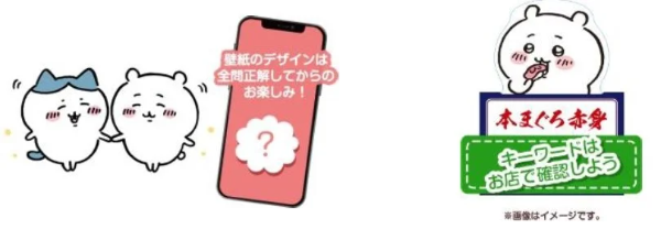 キーワードラリー楽しそう。子供と一緒に買い物で回ります。壁紙ゲットしたいですね。なにげに本まぐろを食べるちいかわイラストもかわいい。