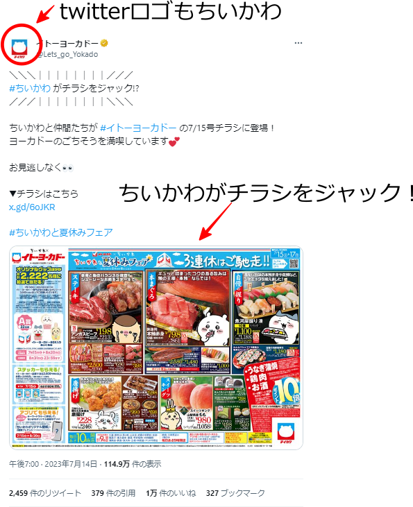 2023年7月15日号のイトーヨーカドーチラシにちいかわ&仲間たちが登場しています。