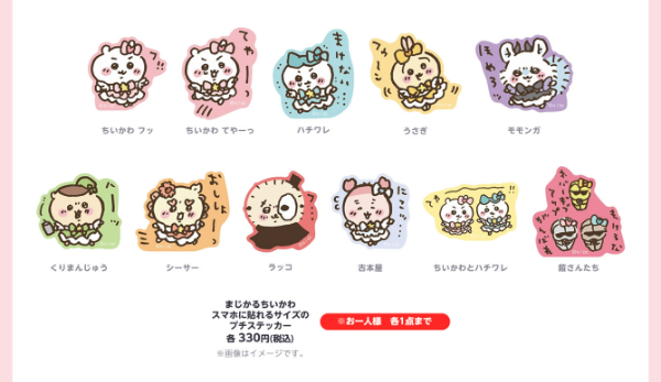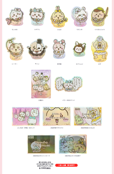 | まじかるちいかわ スマホに貼れるサイズのプチステッカー 各330円(税込) |