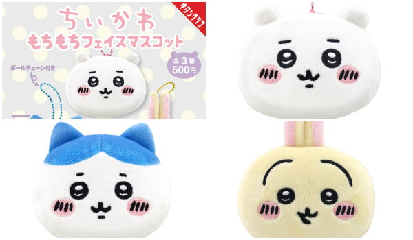 もちもちのちいかわ達のお顔マスコット、かわいいですね。これから第2弾も出そうな予感。