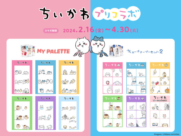 ちいかわプリ機コラボが決定しました!MY PALETTE&キューナナパーセント2に2024年2月16日から4月30日まで期間限定で実施♪対象店舗に撮影フレーム&シールふちセット機種が登場!ちいかわ好きは絶対行くしかない♡