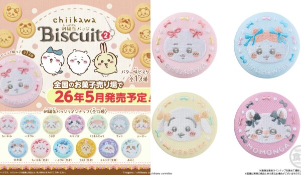 バンダイから、大人気「ちいかわ」の刺繍缶バッジ付きビスケットの第2弾が発売されます。今回のシリーズでは、キャラクターたちがリボンを身につけた特別感のあるデザインが採用されており、全13種類のラインナップが用意されています。刺繍ならではの立体感と柔らかな質感が、ちいかわたちの愛らしさをより引き立てており、サイズも約50mmとしっかりとした存在感があります。セットになっているビスケットは、まろやかなバター風味が特徴で、こちらにもキャラクターがプリントされているため、食べるのがもったいなくなるような仕上がりです。全国の量販店にある菓子売場を中心に展開される予定で、コレクションとしても、ちょっとした自分へのご褒美としてもぴったりの食玩となっています。