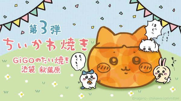 「ちいかわ焼き」第3弾が、GiGOのたい焼き池袋・秋葉原にて期間限定で発売決定🎉 今回のデザインは 「ちいかわ&ハチワレ」 と 「ちいかわ&うさぎ」 の2種類🐰🐱 ちいかわたちの可愛さがギュッと詰まったフォルムで、食べるのがもったいない…‼
