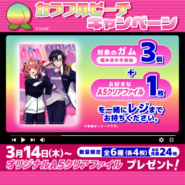 ・対象のガム3個購入でA5サイズのクリアファイル(全6種)をプレゼント!