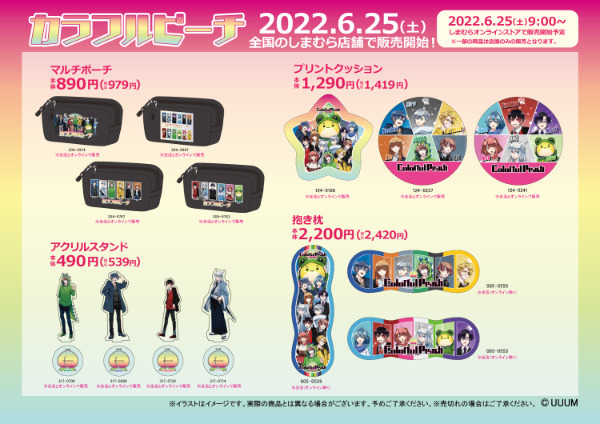 からぴち×しまむらコラボ4弾!カラフルピーチグッズが大量登場♪クッションや12人勢ぞろいのトレーナー、アクスタまで★