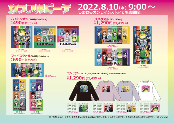 しまむらにて、からぴち(カラフルピーチ)のコラボグッズ3弾が2022年8月10日より発売されます。Tシャツやソックス、ハンドタオルなどをラインナップ!オンラインストアでは予約販売されます。