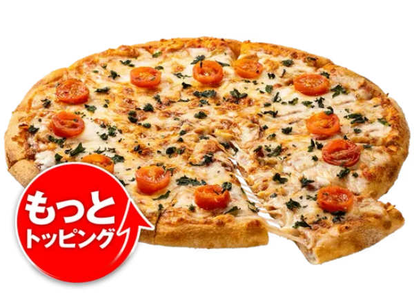 | 特長 | 人気商品「マルゲリータ」のモッツアレラチーズを1.5倍、チェリートマトを2倍にトッピングにすることで、“もっと”食べ応え抜群に楽しめる商品。 |