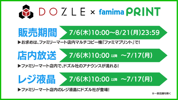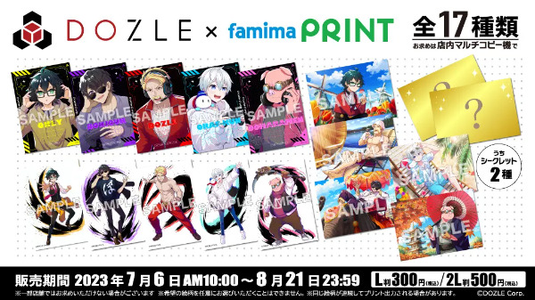 全国のファミリーマート(ファミマ)店内マルチコピー機サービス「ファミマプリント」にて、ゲーム実況者グループ『ドズル社』デザインのランダムブロマイドが2023年7月6日(木)より期間限定で販売を開始。