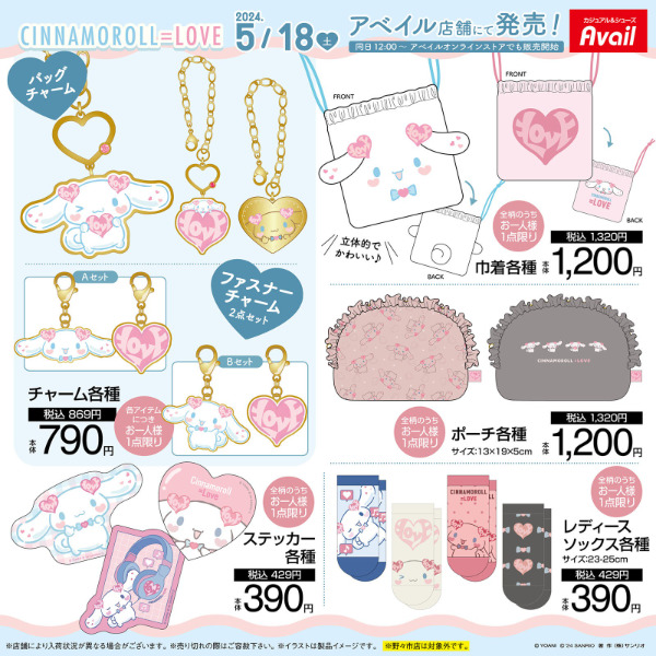 アベイル「イコラブ=LOVE×シナモロール」グッズ発売