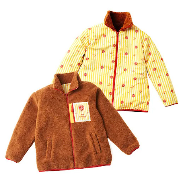 内容:ファミチキをイメージしたリバーシブルのボアブルゾン。数量限定でファミペイWEB予約実施。表面はファミチキの衣をイメージした茶色のもこもこボア素材、裏面は袋のロゴを使用したポップな総柄です。