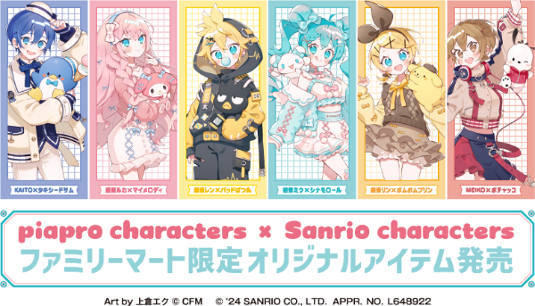 ピアプロキャラクターズとサンリオキャラクターズが夢のコラボ♪オリジナルアイテムがファミリーマート限定で6/20(木)10:00~発売!上倉エクさん描き下ろしイラストとお揃いの小物をつけたミニキャラたちは必見だよ☆数量限定なので早めにGETしてね♡ https://t.co/1O5BsMJwVx pic.twitter.com/ZyIwdbC7Rk