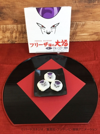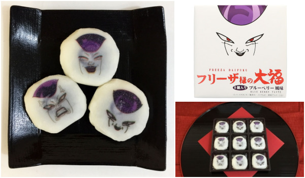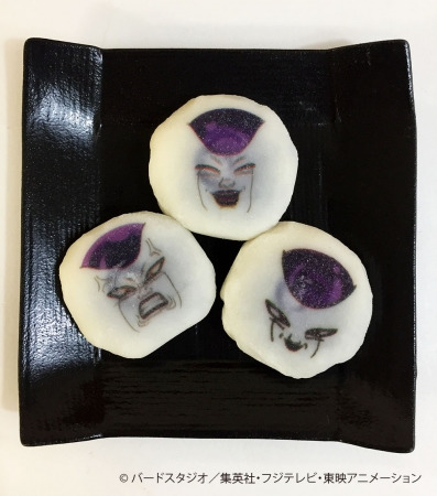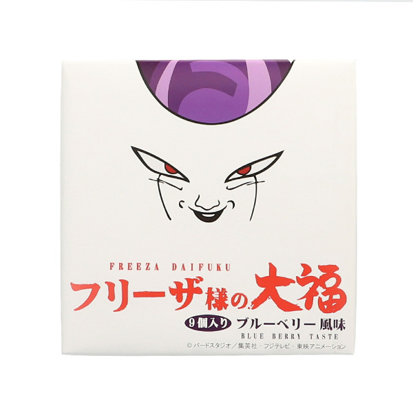 『ドラゴンボール 超』「フリーザ様の大福」が販売されています。笑顔、ブチ切れた時の怒り顔、通常のニヤリ顔の3種類の表情がプリントされた大福まんじゅうには、ブルーベリー味のクリームとホイップクリーム入り。ビジュアルのインパクト大!お土産にも話題になりそうなお菓子です。