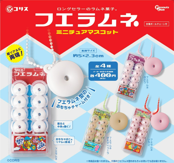 コリスのフエラムネがミニチュアマスコットに!ボールチェーンも付いていてキーホルダーに追加できますね。フエラムネ型チャームもかわいい。
