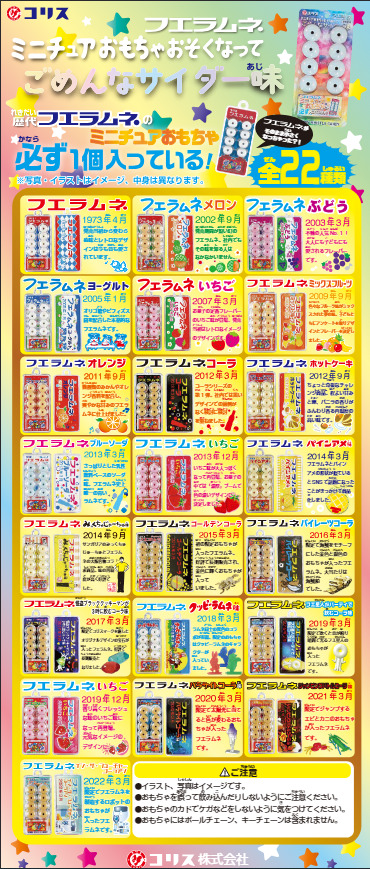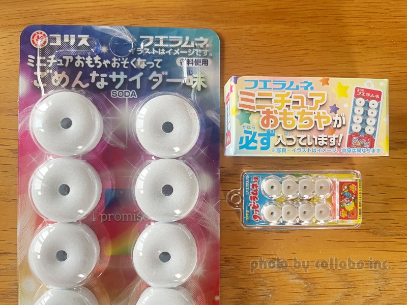 「フエラムネのミニチュア付」1弾2024年発売!50周年おもちゃ付商品”コリス フエラムネ ごめんなサイダー味”