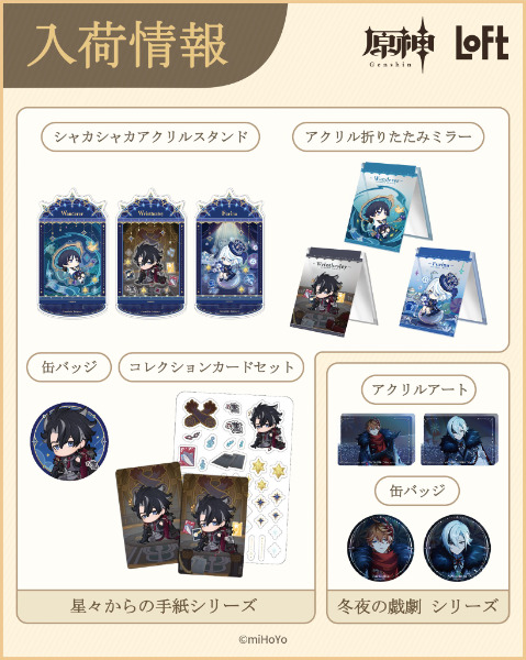 ロフト×原神ポップアップ!新グッズ登場♪14店舗&オンラインでも♪星々からの手紙シリーズシャカシャカアクリルスタンドや缶バッジなど