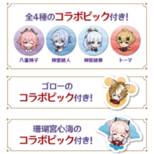 コラボピックの裏面からシリアルコードを集めると、原神ゲーム内で使えるアイテムが貰えます。