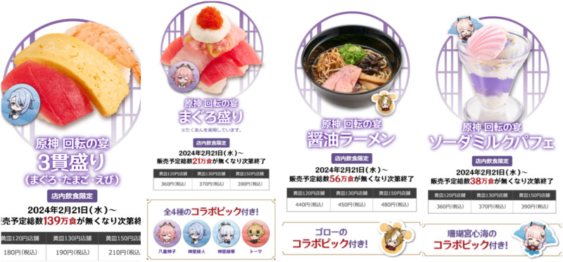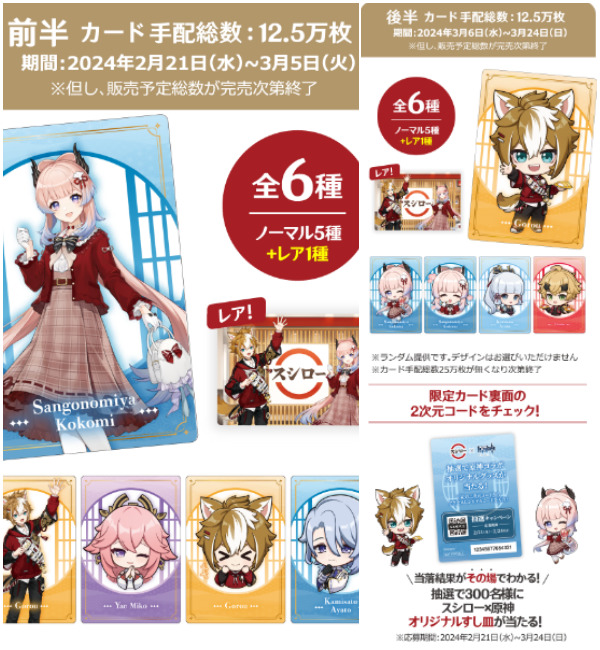 原神×スシローコラボキャンペーン公式ホームページ:https://www.akindo-sushiro.co.jp/genshin/