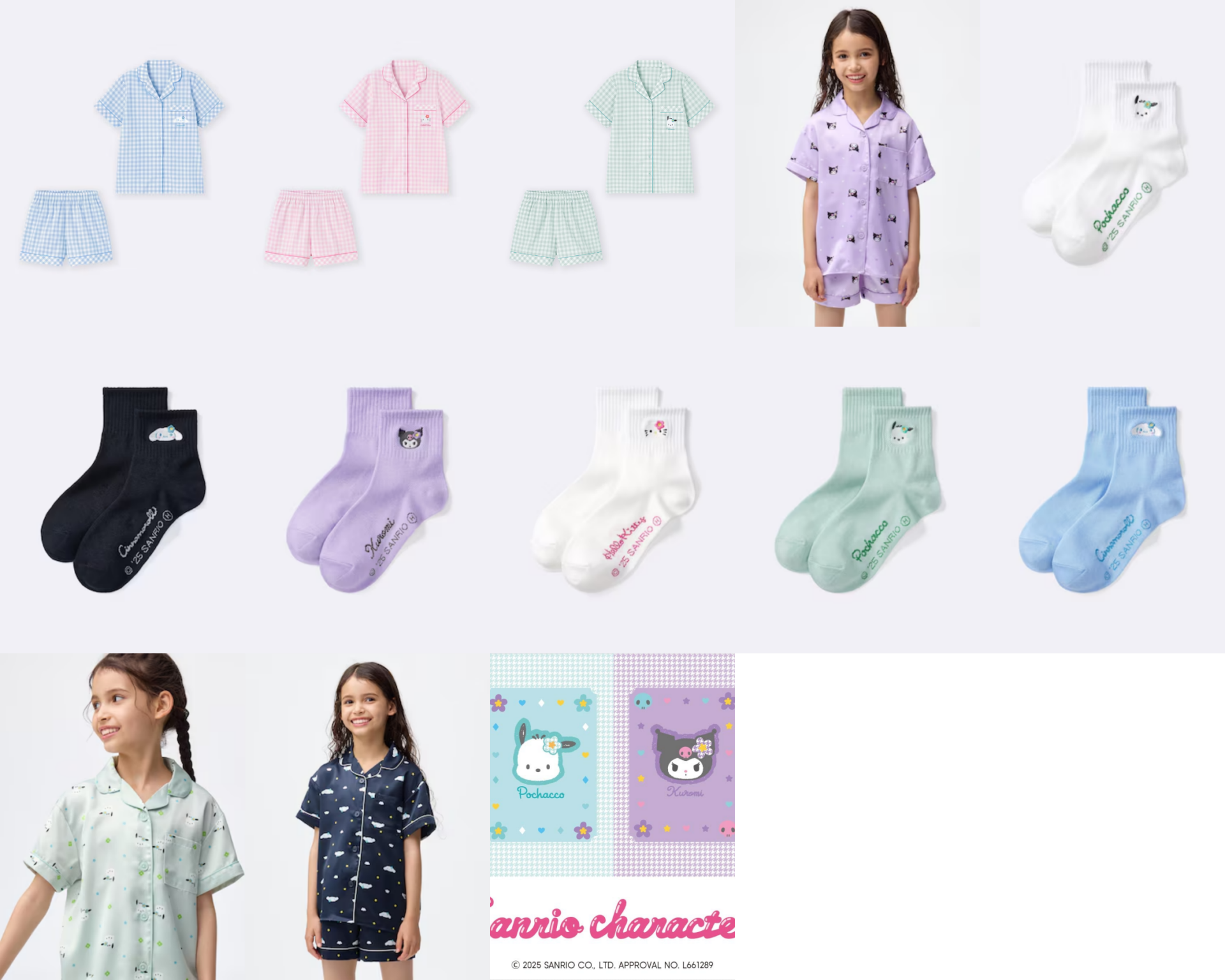 GU×サンリオ2025!キティ・ぽちゃっこ・シナモロール・クロミのコラボパジャマ&靴下 発売🌼