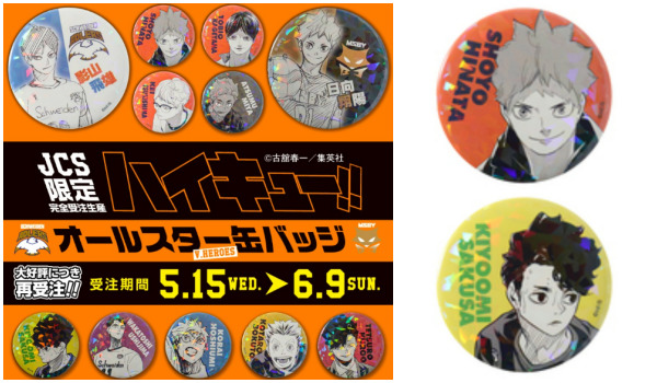 「ハイキュー・オールスター缶バッジ」再販受注スタート!JCS限定で取扱い販売!