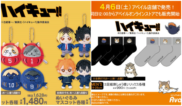 ハイキュー×アベイルグッズ!ぬいぐるみ・だるまマスコット&ソックス2024年4月6日~