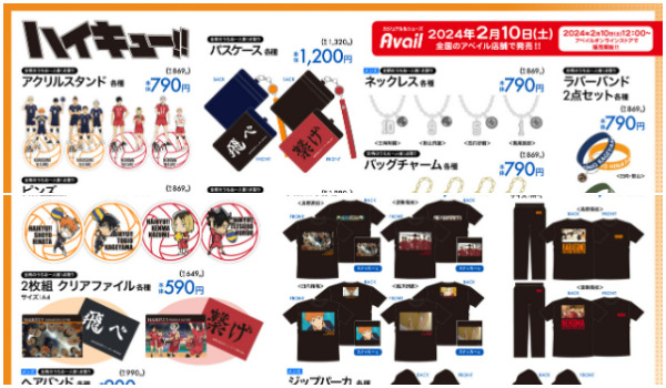アベイル×ハイキューグッズ一部商品再販!2024年映画公開で盛り上がるファン必見のラインナップ
