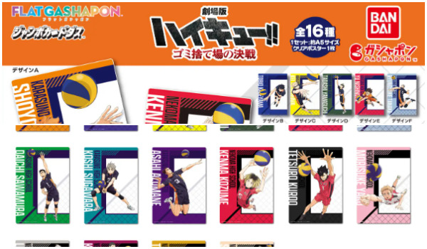 ハイキュー!!ガチャ新作クリアポスター『映画ゴミ捨て場の決戦』より。フラットガシャポン登場!設置店舗はガシャどこ?PLUSで検索