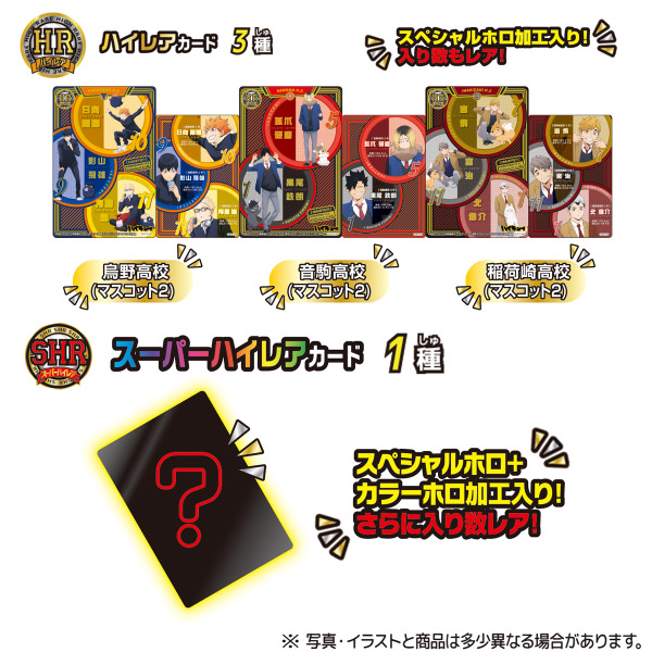 ハイキューきゃらくたぶるカードグミVol.2、ホロ加工入りのハイレアカードがあるのがワクワクしますね。スーパーハイレアも・・豪華!