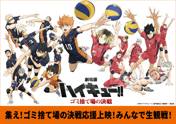 『劇場版ハイキュー!! ゴミ捨て場の決戦』の応援上映が開催されることが決定しました!2024年3月14日に福岡や東京、北海道など13の都道府県、20劇場にて実施。さらに2024年3月29日には8劇場にて、自動制御ペンライトによる演出が付いた応援上映も開催。ペンライトは当日劇場または、オンラインで事前購入できる他、市販のペンライトの持ち込みもOK!チケットは上映劇場のホームページにて2024年3月より発売されます!
